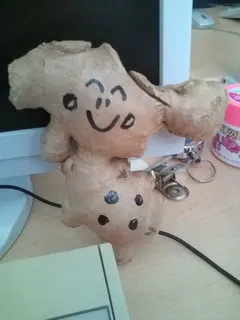 何故か机の上にショウガがあり、それに