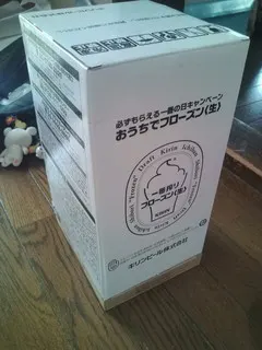 おうちでフローズン生 家庭イベント 2012.08.202026.03.25 苦労して集めたシールの結果がやっと送られてきました。 おうちでフローズン生 のキットです。 外箱はこんな感じ 裏には簡単な説明が 開封するとこんな感じ 撹拌部分。くねくね曲がるようになってます。 冷却部分 外の透明な入れ物に塩水を入れ、黒い入れ物を セットして冷凍庫に入れます。 凍った後、黒の入れ物の中にビールを適量入れます。 でもって混ぜ混ぜします。 中の撹拌棒が上下に移動します。 で完成した凍った泡をビールに入れるとできあがり。 結果からですが、ココまで苦労した割りには こんなもんかって感じです。凍った泡は一番最後に 氷の塊として口に注がれます。 付属の電池も一回冷凍泡を作成すると終わってしまったので かなりの電気食いだと思います。