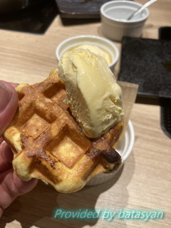 ワッフルにアイス。