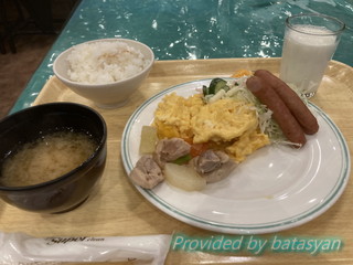 朝は朝食付きだったので、