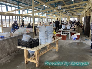この朝市会場ですが、牡蠣小屋が有りまして、