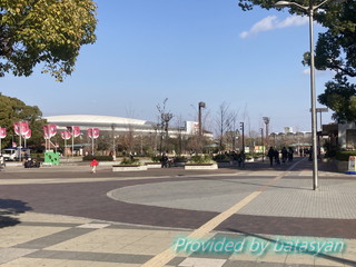 長居公園を横目に