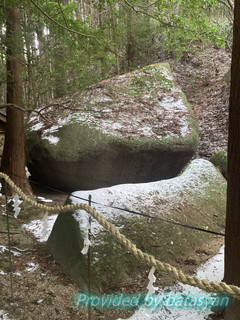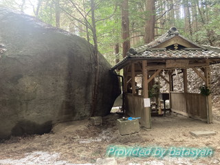 拝殿の横にも大きな岩(きんちゃく岩)