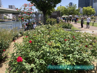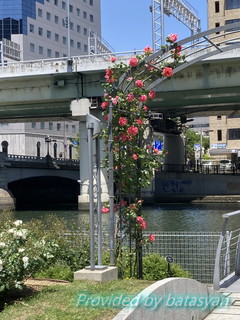 足は橋の左側に有る中之島バラ園
