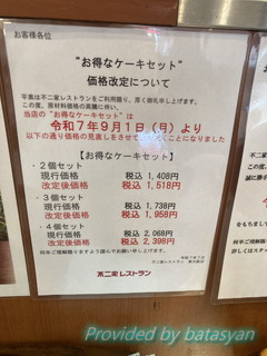 お得なケーキセットも値上げとなりますわ。