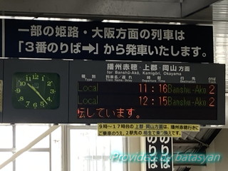 この列車は相生方面の播州赤穂行きです。