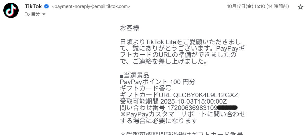 TikTokよりメールが来てまして…