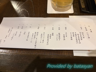 お品書きはこんな感じ。