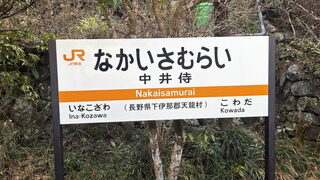更に進んでいくと、長野県に入っていきます。この間も天竜川沿いを、トンネルに入ったり、出たりしながら進んでいきます。そうすると次の駅、中井侍駅に到着です。こちらの駅も秘境駅10位の駅ですが、こちらの駅は、少し住宅が有る感じ。茶畑のような感じの...