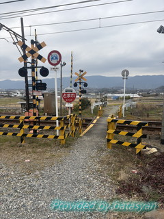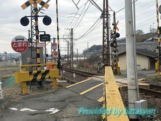 目の前は踏切ですので、